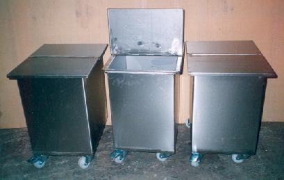 100% stainless bins with slide of lids on wheels |