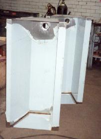 These are 2 sinks standing upright. They were designed to angle in at the front & back, as requested by a customer. |