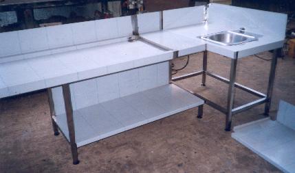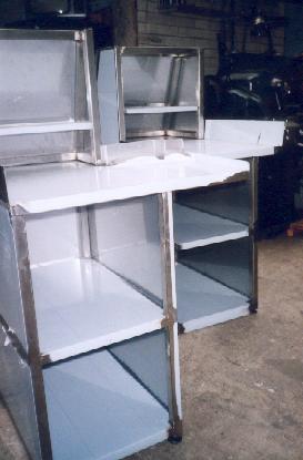 stainless steel tables, racks, sinks, bins, shelving, worktops |