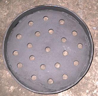 of heat proof paint. This plate is long lasting and more substantial than similiar products on the market. Prices range from £45 for a standard size of approx 11". They can be made to order, along with all other tandoor accessories. |