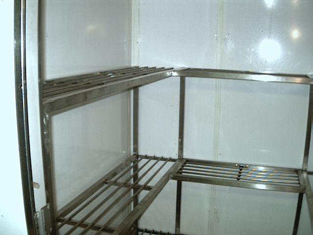 Below is an example of a recently installed racking system for a cold room. It is designed to provide multi level storage and also allow for the air to circulate as is required. The whole unit is completely stainless and easily removable.